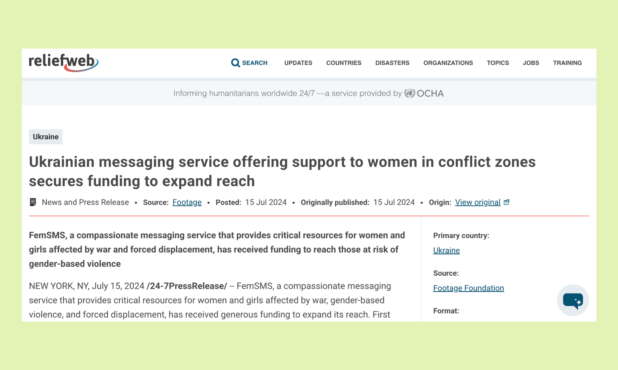 Press & Media About us Footage on the BBC View more Latest Press Release View more FemSMS featured on ReliefWeb View more «Ви не самотні, ваш біль – наш біль…»: як FemSMS підтримує українських жінок Читати «You Are Not Alone, Your Pain Is Our Pain...»: How FemSMS Supports Ukrainian Women View more FemSMS Ukraine in Liberation.fr View more Contact us for more informationfootageproject.org Name * First Name Last Name Email * Message * Thank you! Follow @footageproject for more FemSMS updates